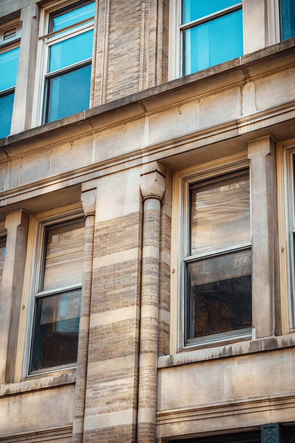 Additional restoration efforts included localized stone and bluestone repairs, ensuring consistency in both performance and appearance across the façade. All work was executed in accordance with strict safety and compliance requirements, including tenant protection measures, controlled access via suspended and supported scaffolding systems, and detailed coordination with engineering inspections throughout the process.