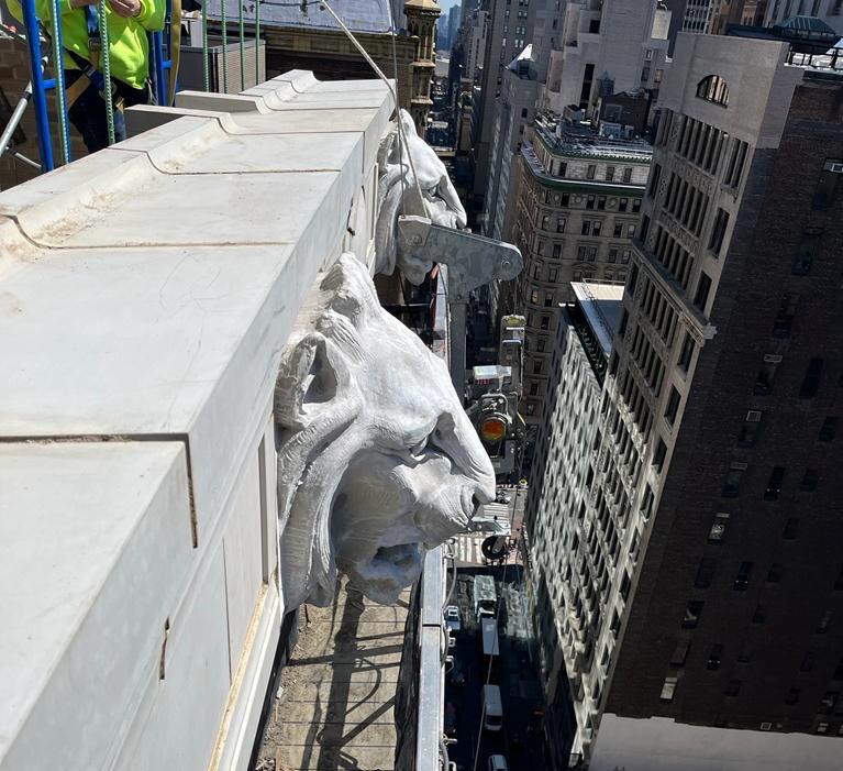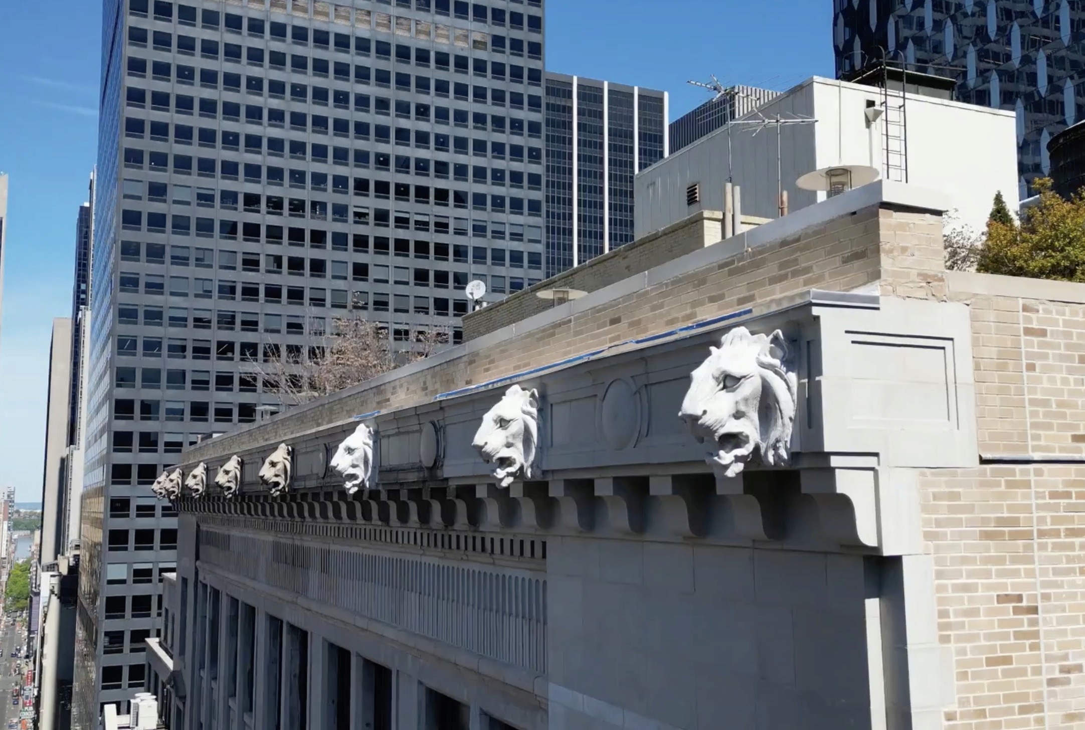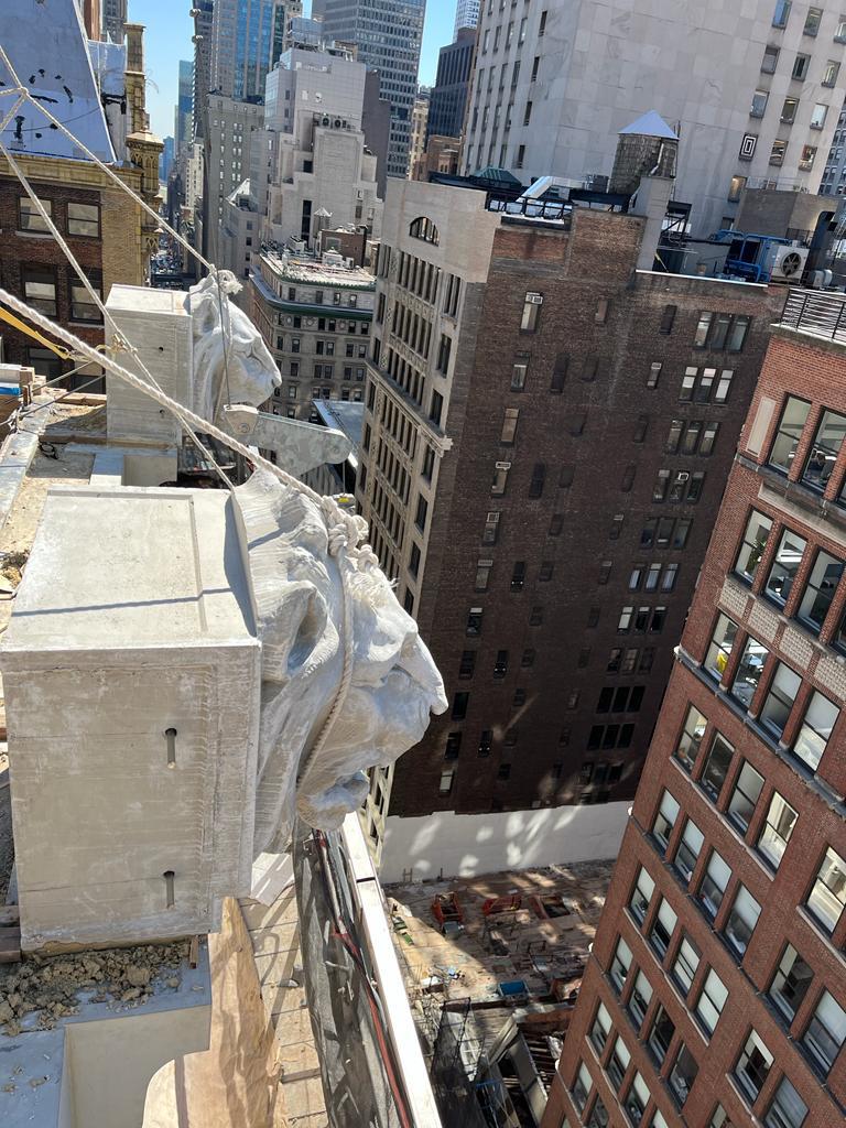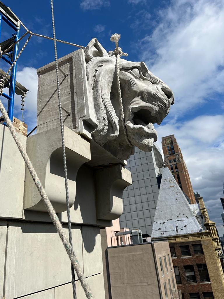 Located at 25 West 45th Street in the heart of Midtown Manhattan, this project centered around the restoration of the building’s historic façade, including the reconstruction of its distinctive lion head terracotta ornaments.