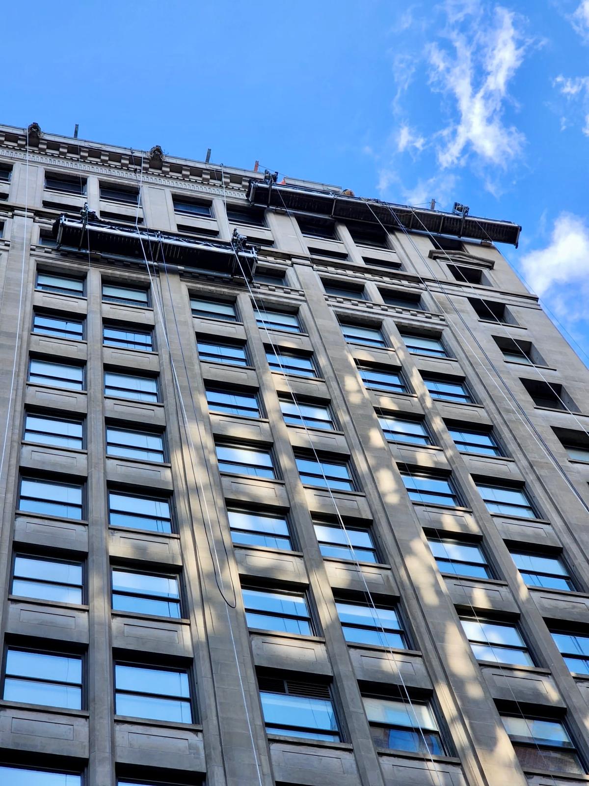 The project also involved significant structural upgrades to the fire escape system, including reinforcement of steel framing, replacement of critical components, and rebuilding of adjacent masonry to ensure long-term safety and compliance.